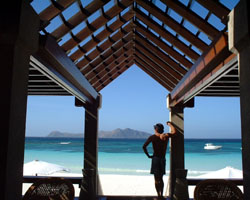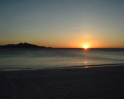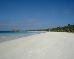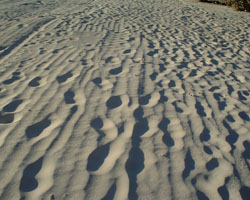 あまりにもサラサラで小麦粉のように細かい砂なので、ちょっと風が吹くと、すぐに「砂の波」ができるのです。月夜の下では特に幻想的。今まで色々なビーチを見たけれど、こんなに真っ白い砂は初めて。 | |