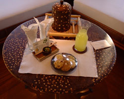 テーブルにはホームメードのクッキーとレモンジュースが用意されていました。 | |