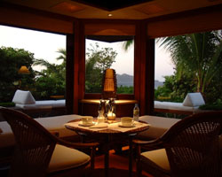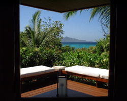 中心のピクチャーウインドウからは、どの部屋も向こうの島が正面に見えるように設計されています。フィリピン人の地元建築家によるものですが、なかなかアマンぽさを出していて、ローカルの資材を上手く組み合わせていて感心。 こんなビラがノースショアーに持てたら最高だなぁ~なんて話したりして。 | |