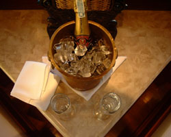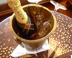 2日目は(持参した)ロゼで乾杯。 (何故か関空にはドンペリはない) | |