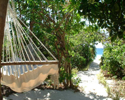 お部屋の前の小道を抜けるとビーチに出ます。おとなりのカシータとはかなり離れていて周りはグリーンに囲まれているので、プライバシーはばっちりです。是非、新婚さんにお薦め! | |