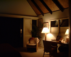 お部屋には、鍵無し、電話無し、ラジオ無し、テレビ無し、当然PCも使えません。携帯電話は、部屋以外では禁止・・・とくれば、今まで日本の人に会ったことが無いのも頷けるかな?(本当に1度も見かけたことがありません)お隣りのフォーシーズンズとは正に対照的。普通のホテル仕様が好きな人は4シーズンズの方が快適かも。人工的なホテルが・・・?の私達は、断然にコナビレッジ派ですけどね。 | |