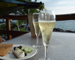 シャンペン持参は(ケチな二人の)お約束。サンセットタイムにラナイでの最高の楽しみ。生きてて良かったぁ!(大袈裟ぁ~) | |
