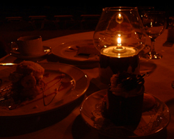 デザートのケーキ。薦められるままに3個も食べちゃったよお。体重計に乗るのがコワイ・・・。 | |