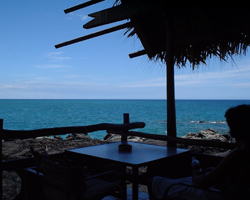 こちらはモアナレストランの内部から。レストラン中が真っ赤に染まります。(余談ながら、レストランのお味は断然サモアレストランの方が美味しかった) | |