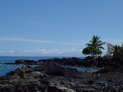 真ん前のビーチから、ハレを見たところ。溶岩がワイルド! | |
