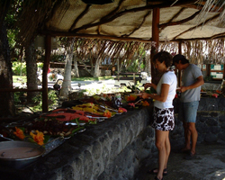 ランチはブッフェスタイル。新鮮なシーフードなどがずらりと並びます。特にオイスターが美味しかったぁ。ランチタイムにリゾートに戻れない人の為には、ランチボックスをこさえてくれますよ。 | |