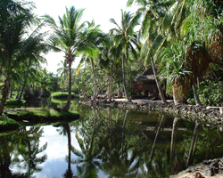 ポンド(沼)の前にもコテージがあります。古代のハワイアンが実際に魚を養殖していた場所で、ムードはたっぷりなのですが・・・以前ここに泊まった際に「蚊」が多くて閉口しました。(T-T) | |