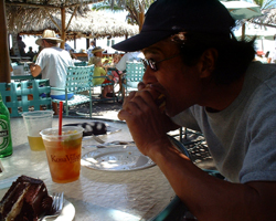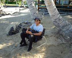 待ちの図。いつでもリゾートの従業員に間違えられる男です。(笑) | |