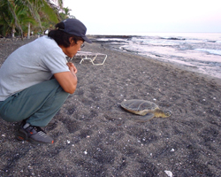 ということで、じっと見る人。カメ君がんば!それにしても、エイは足元までやって来るし、カメがビーチで休んでいるし、リゾートにこんなビーチがあるなんて驚き!感動。 | |