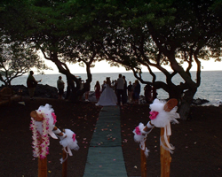 サンセットタイムにはオーシャンフロントの木陰でウエディングが行われていました。お幸せに。 | |