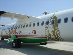 アマンサラのあるSiem Reapまでは、バンコクエアを利用しました。50人くらいしか乗れない小さなプロペラ機です。バンコクからの飛行時間は約50分。サンクス・ギビング休暇中のアメリカ人観光客が多かったような?11月からはベストシーズンの涼季なので、行きも帰りも満席。