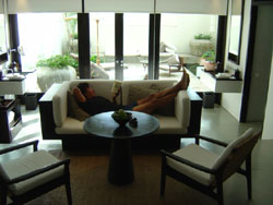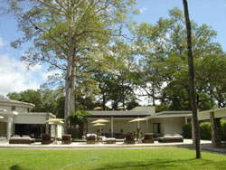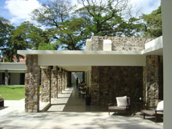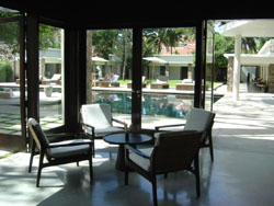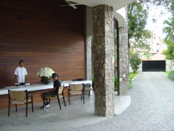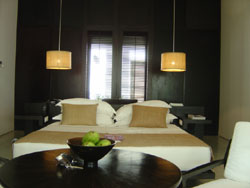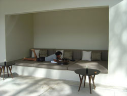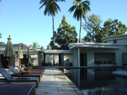 お部屋を結ぶ回廊。う~ん、何故かとってもファミリア。ああ!そうか!ハワイによくあるKahalaの古い豪邸の建築パターンなんですね。ミッドセンチュリーに流行った、フランク・ロイドを彷彿させるデザイン。かつてのシアヌーク殿下の迎賓館の後に再築したホテルということで、なるべく元のプラン再現したとは聞いております。お部屋はわずかに12。ホテルというよりは、どなたかの別荘に招かれたよう。あのジャクリーンKもお気にいりだったとか?(ほんとかな?)ここはアマンにしては珍しく、ビラではなくお部屋。限られた敷地ということで、仕方ないかも。