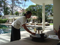 アマンといえば、壮大なランドスケープと街中から離れたひっそりとしたロケーションが売り物のはず。アマンサラは、大きなプールもないし、街中だし、塀で囲まれて景色も無し。プール付きのビラも無し。インテリアも私好みではないし、正直興味が沸きませんでした。が、全てのアマンに行ったある方が「アマンサラ、良かったですよ~!」というのを聞き心が動き急遽行きました。結果は、良かったですよ~!ただし、あらゆる意味でこれからという感じです。皆さん本当に一生懸命。当然のことながらホテルはスタッフによるものが一番なんだな~としみじみ感じました。インテリアも不思議にマッチ。結構癒されます。今更ながらの、アマンでした。