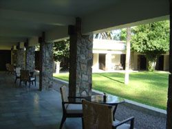 お部屋の前の回廊にあるテーブルとチェア。朝食をとったり、ワインを飲んだり。