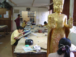 工房に連れて行ってもらいました。仏像、石膏、彫り物、漆塗り、シルク織・・・色々興味深いものがありました。