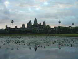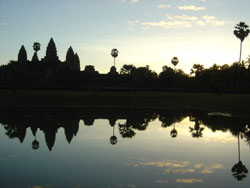 2日目は晴れ。鏡のような「逆さアンコールワット」です。