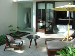 高い塀に囲まれた中庭。左がシャワーで奥がトイレ。人に薦められ、アマンサラ・スイートに泊まりたかったのですが、既に予約済み。中庭がとても広いと聞いております。