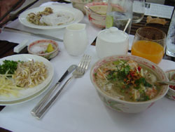朝食には、ベトナム料理のようなおかゆが美味でした。フランス植民地ということで、もちろんクロワッサンやフランスパンも絶品です。