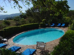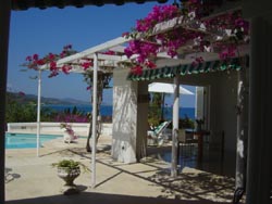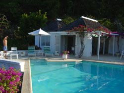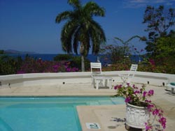 例のごとく、「あのーもっと明るくて、海が見えて、シンプルなビラがいいんですけど~」と聞いてみました。え~あのビラ気に入らないのですかぁ?と驚かれましたが。2軒ほど見せていただくことに。まずはこちらのビラから。プールからは確かにモンテゴ・ベイが臨めます。だけど、建物と別れているのは好きじゃないのですが。(おそるおそる)