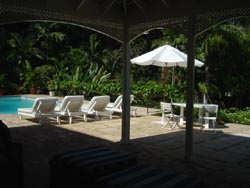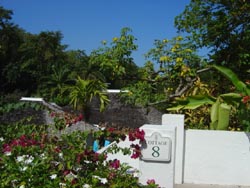 28のビラは、それぞれのオーナーにより全て違う建築とインテリア・デザインで、2ベッドルームのプール付きの母屋&2つの離れ棟で構成されております。昔から通い続けてる強力なリピーターが大勢いて、皆さんお気に入りをリクエストするみたい。私たちは初めてなんで、オマカセ。最初に通されたのは、奥まった#8でした。