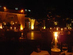 キャンドルのディナー。気持ちよい。奥がポロ・バー。