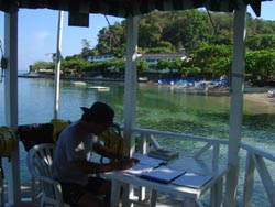 リゾート内のダイブショップでウエイバーにサインをするところ。ダイビングは、見た目よりは透明度があって面白かったとか。
