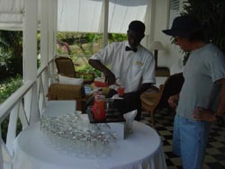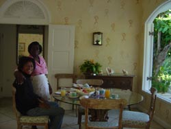 お部屋付きのメイドさんが毎朝来て食事を作ってくれます。ジャマイカのスタイル、優雅ですね。でもね、たった2人にはデカ過ぎたかも?私は何となく「まとまりの無いビラ」と感じましたし、お花柄等が自分の趣味に合いませんでした。オットに言わせると「味があって、デカクテ、プライバシーばっちりでイイ」とのことでしたが。私たちは別にお忍びセレブではないしね・・・。(^^;)