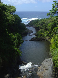 周りには店もレストランもありませんので、買出しして行くべしです。ハナへの途中、恐ろしくDEEPなハワイの崖っぷちステイでした。