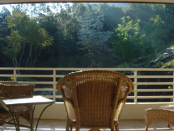 私達のステイしたコテージからのお庭の眺め。広大な森林にはフクロウを始め様々な野鳥が。反対側は遠く海岸線やカフォラエ島を見下ろす、まさに桃源郷。