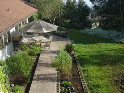 高原にたたずむ、センスと細やかな愛情の溢れる素敵なビラは北イタリア風。こちらは森に面したバックヤードのハーブ畑。