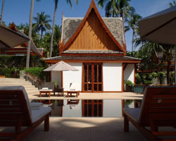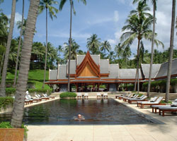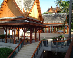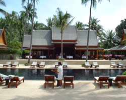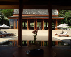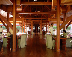 プールの脇にあるメインレストラン。美味しかった。もしかしたら、全てのアマンの中で一番のお味では? 反対側の東屋では、毎日コンプメンタリーのお茶とデザートのサービスもあります。 |