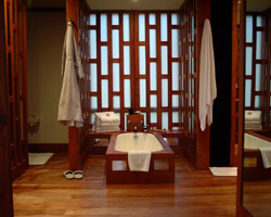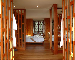普通のパヴィリオンに行くには長い通路と階段を利用。レイジーな私は、ちょっと疲れたりして。ある意味では、アマンリゾートの中で一番ヒエラーキーがはっきりしているホテルだと思いました。 |