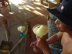 マルガリータ、うまー。はまりました。余談ながら、メキシコでマルガリータを頼むと当然にテキーラですよね?ジャマイカでは「ラム」をたっぷり入れます。くー、きつー。