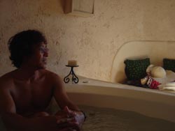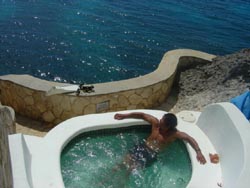 こちらは外のジャグジー。なかなかワイルドなセッティング。サンセット・タイムはよろしおすえー。