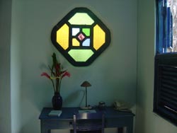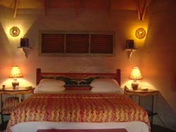 ベッドまわりといわず、全てがアートでした。カリビアンスタイルと言うよりは、メキシコ、バリ、スペイン、ハワイ等のリゾート風のミックス・スタイルでしょうか?自分では絶対にしないテイストだけに、何となく楽しい♪うちのオットは「すごーーーく落ち着く。これぞジャマイカ~と大喜びでしたが。