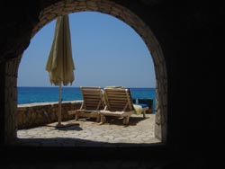 私達が宿泊していた時期はベストシーズンとあって、オール・ソールド・アウト。お客様は私達以外は全員フランス人。普段もフランス&イギリスからの人が圧倒的に多く、ギリシャ人やドイツ人等が続くそうです。日本のお客様も1ヶ月に5~6組と健闘。「みんなこんな所まで何しに来るんやろ」(オット)って、あなたに言われたくないんですけど。(^^;)