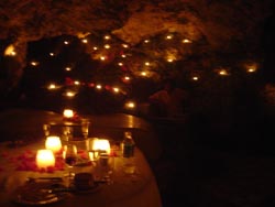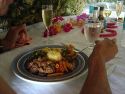 キャンドルのディナー。気持ちよい。奥がポロ・バー。