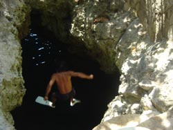 超ワイルドな、洞窟につながるジャンピング・プレイス。10メートルはあるよね?