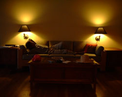 レストランの外にあるカウチです。夜は南十字星を眺めながらここで寝っころがっていると、熱いカフェラテやケーキやホームメードのバニラや焼きたてのアップルパイなど(コンプリメンタリーで)を運んでくれます。はーーー太るはずよね。