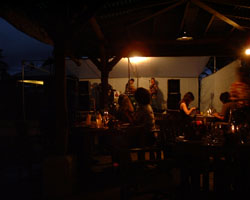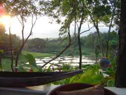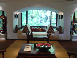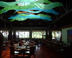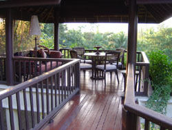 レストランも当然のように、いつでも私達だけ。アマンワナは3食付きの料金システムです。「好きなものを好きな時間に好きな所で好きなだけ」がここのコンセプト。毎日メニューは変わるのですが、メニューにないものもリクエストすればナンでも作ってくれました。インドネシア料理が大好きなものでお味は文句無しの美味しさ。こんなジャングルの中でスゴイ!って思いました。ただし、超太ります。覚悟が必要ですね。(^^;)))