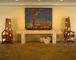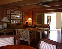 領主様の邸宅を再現したコエレのロビー。イギリス風のインテリアは、オーナーのマードック夫妻のコレクションとか。余談ながら、デザイナーはモロカイ・ロッジと同じイギリス人デザイナーです。