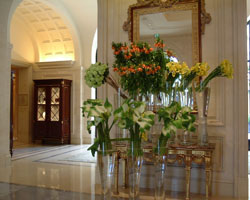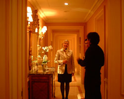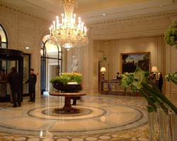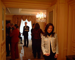 フロント&エレべーター前。ここも目を光らせたセキュリティが何人も立っているので、ご用の無い人は入れない雰囲気です。フロントのオネエサンも、テキパキ。皆さん大変に誇りをお持ちのような印象。