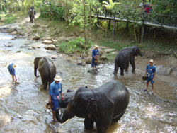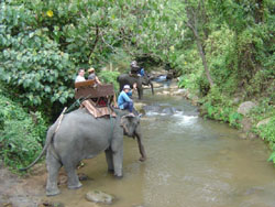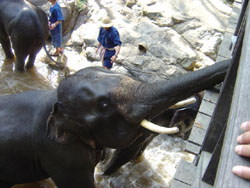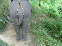キュートな象さんのお尻。すっかり象さんにハマッテしまいました。ほんとに超可愛いのです!サーカスとかではなくて、山で生活しているそのまんま。飼いたい!と思ってしまうほどです。チェンマイ観光のハイライトですね。ホテルからはチャーターで10分くらいの場所です。