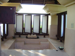 スパの入り口。アジア一のセッテイングとして名高いスパも、ビラ棟を利用してあります。