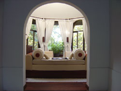 全てがアマンお得意のシンメントリーな構成になっています。ベッドをはさんで両コーナーにはカウチがあります。広くも狭くもない丁度良い大きさ。さすがですね。