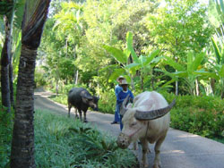 ホテルの敷地内に水牛が。演出でしょうか?それとも、ほんとに働いているのかしらん?