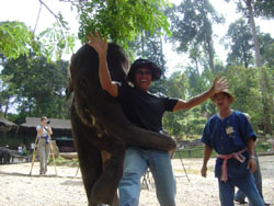 早速、交渉。ゾウサンで周辺の山道をお散歩に行く事に。