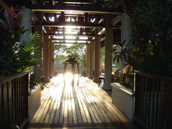 プールに向かう棟。サンセット時は西日がまぶしいかな。