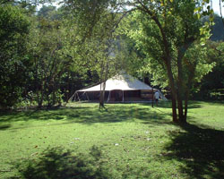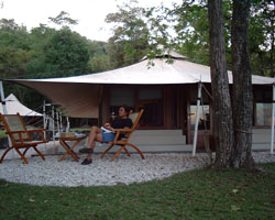道をはさんで右側がジャングル・テント、左側がオーシャンテント。広さや内装は全て同じ。全20室。ちなみに、お客は私達を入れてたったの3組、6名で貸し切り!ぜんぜん他の人に会いませんでした。やはり、政情不安ということでキャンセルが相次いだそうです。